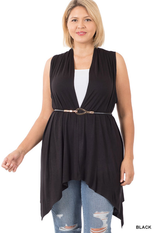 Plus Sleeveless Draped Open Front Cardigan